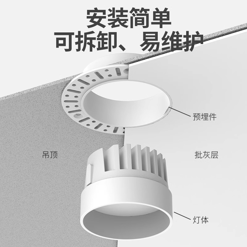 Ultra thin no side frame cylinder light embedded anti-glare smart ceiling light embedded led spotlight home living room 3005-Taobao