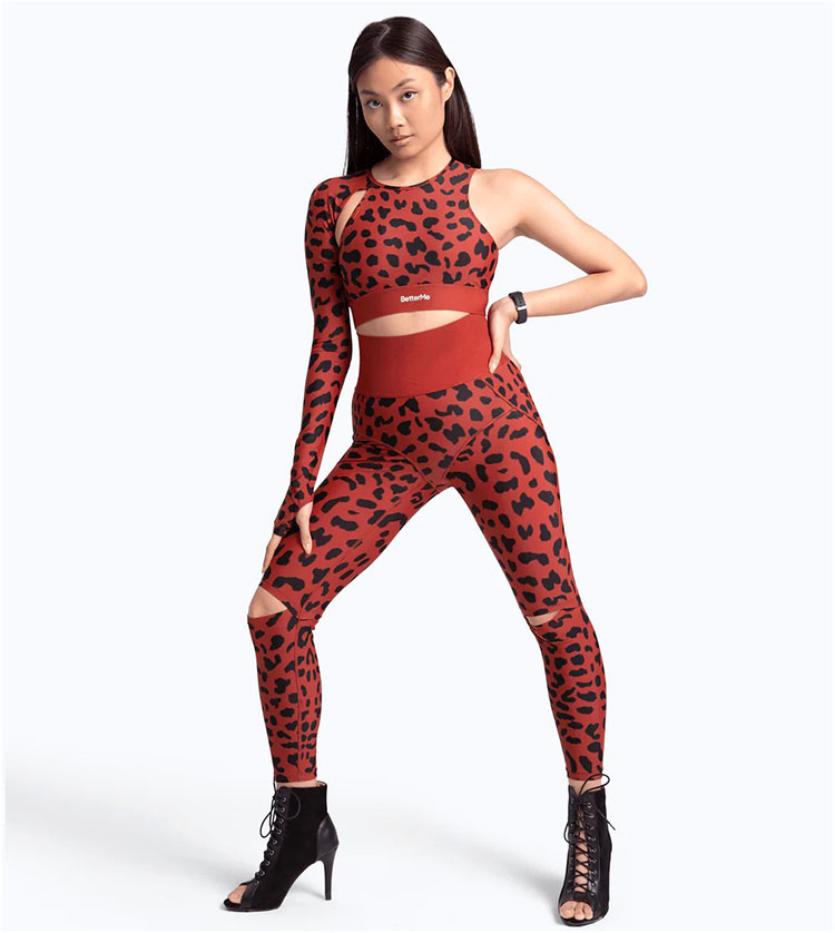 European and American hot girl style pole dance bar dance sexy female red BAO WEN Pilates aerial yoga one shoulder long sleeve