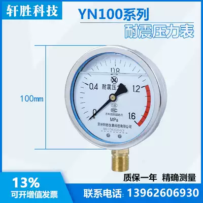 YN100 1 6MPa seismic pressure gauge anti-vibration pressure gauge anti-vibration pressure gauge Suzhou Xuansheng instrument