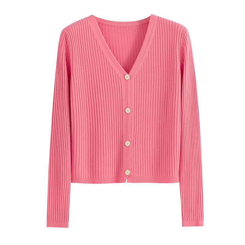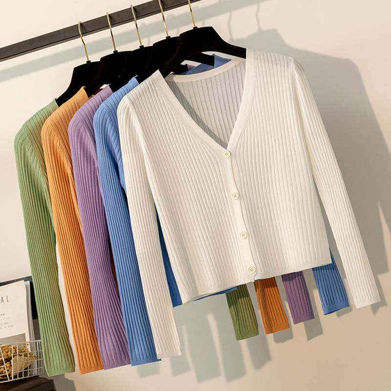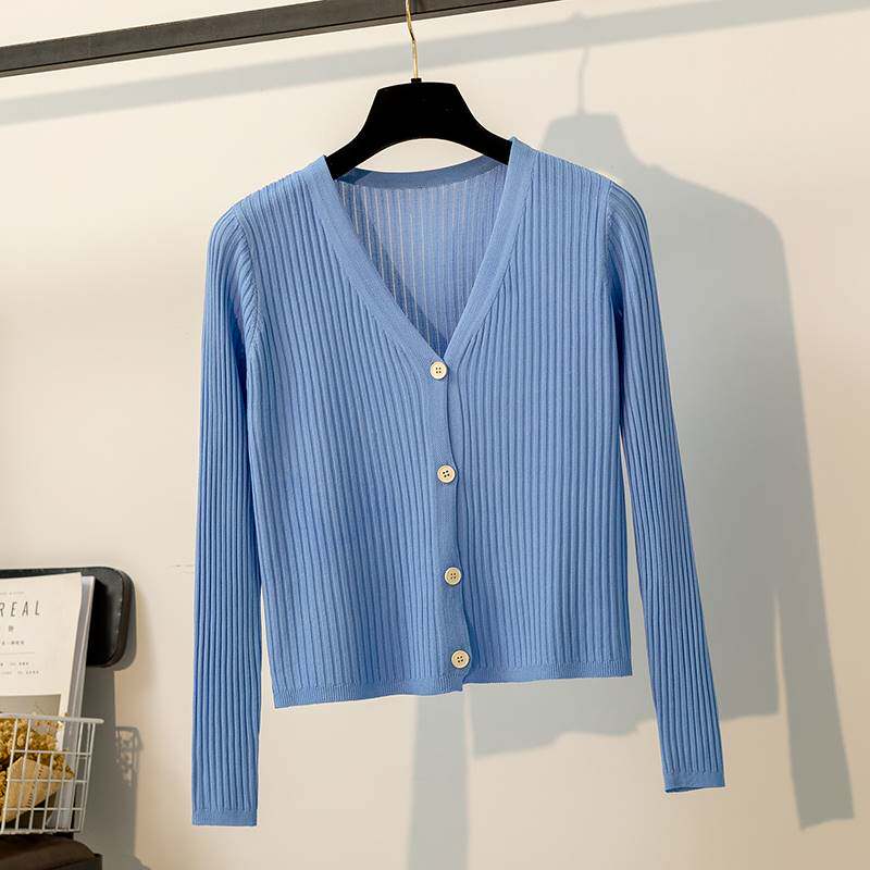 Summer light thin collar air conditioning shirt long sleeve knit cardiovert lady summer air conditioning office air-conditioned room jacket-Taobao