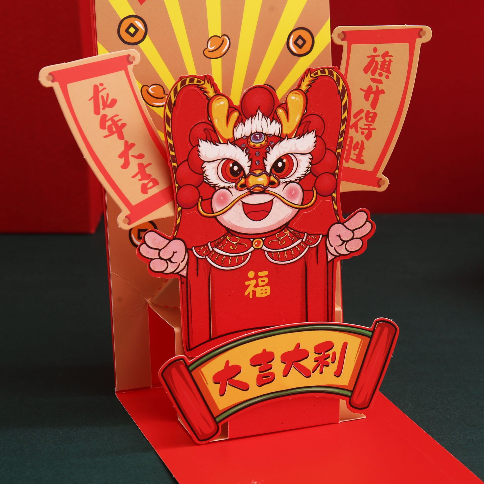 2024 new dragon year humbling soundtrack is a seal creative cartoon country tide pressure disposable solid folding New Year's red bag 3088-Taobao