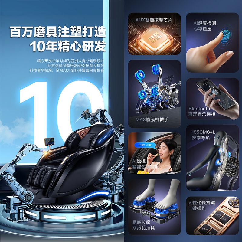 AUX Massage Chair 4D Large Massage Chair Double SL Rail Home Full Body Multifunctional Space Capsule Zero Gravity T600 -Taobao