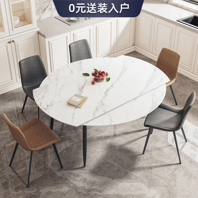 Retractable Nordic rock plate Round table light extravagant small family modern minimalist folding dual-use variable dining table and chairs-Taobao