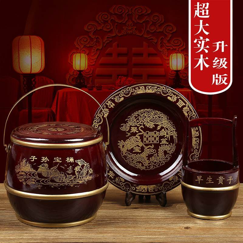 Children and grandchildren Happy Barrel Wedding Celebration Supplies Big Solid Wood Small toilet accompanied by three suits Spittoon Out of Wedding With Joy-Taobao