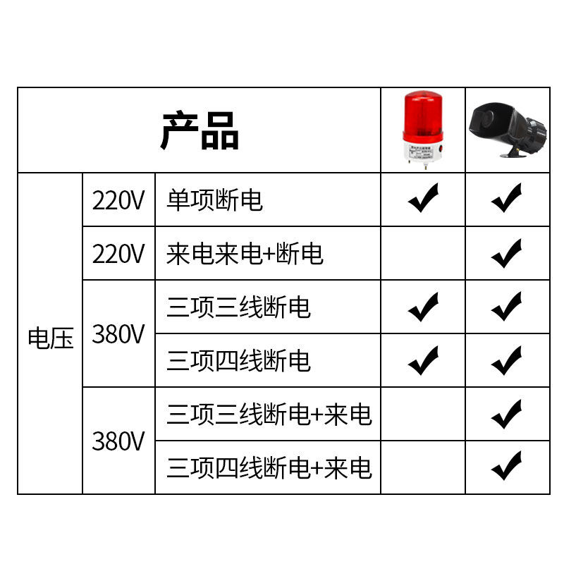 Power off alarm 220v Line head 220v Single power off alarm (wire head section) Power off alarm 380v Four-wire 220v Single call siren 12v Power off siren Line Head 22