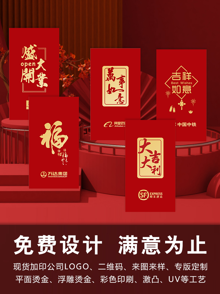 Red packets Custom logos Lunar New Year's Eve is a seal print book to be creative wedding Last name bronzed gold printed red packet bag-Taobao