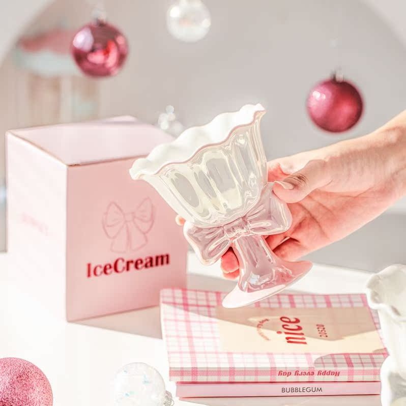 Bow Tie Ice Cream Cup Dessert Salad Bowl Sugar Water Bowl Ceramic Bowl Home Princess Wind Cup High Foot Cup Cute-Taobao