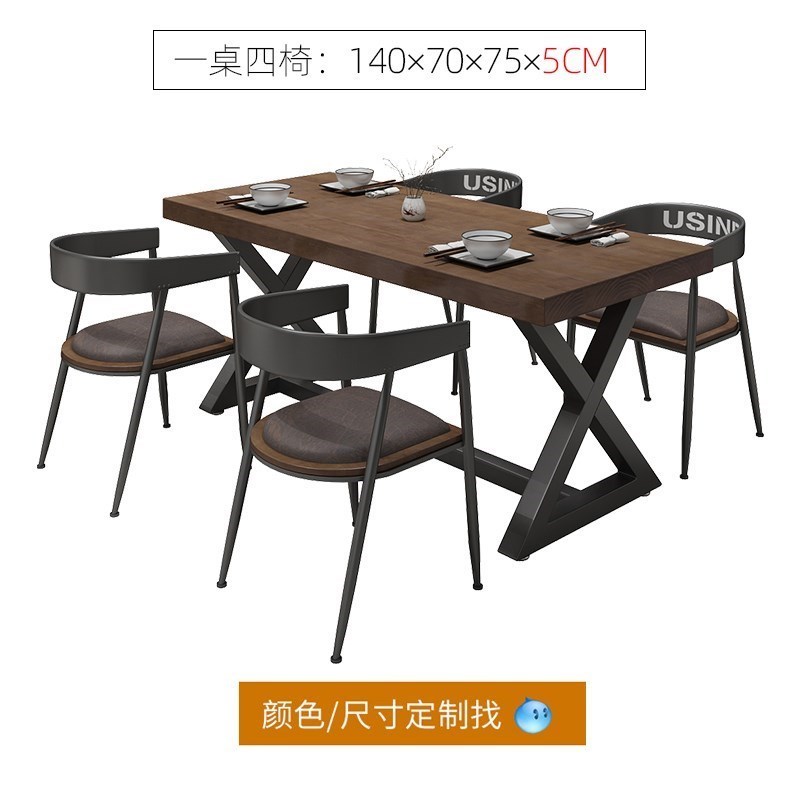 Retro Bar Table Industrial Wind Barbecue Shop Fire Pot Shop Quick Restaurant Music Tavern Rectangular Dining Table And Chairs Group I-Taobao