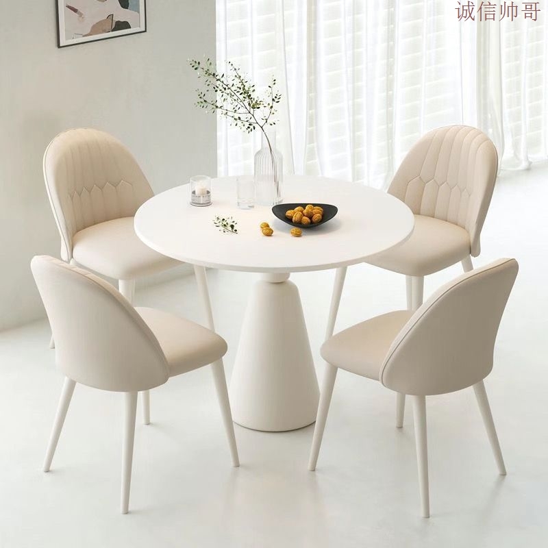 Integrity Handsome Man Pure White F Rockboard Round Table Light Lavish Modern Minimalist Cream Wind Reception Talks Table Small Family-Taobao