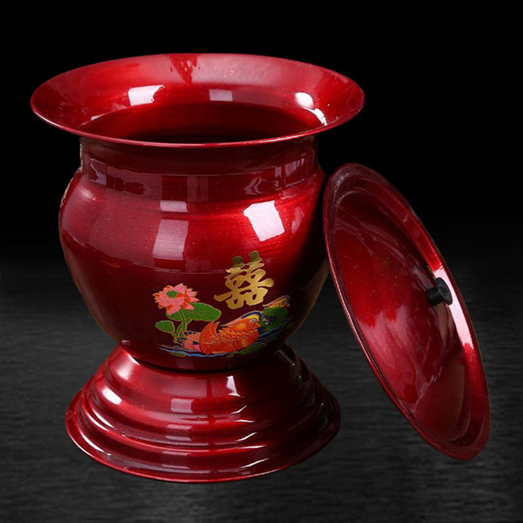 Wedding Supplies iron spittoon children and grandchildren barrel red high-foot spittoon red with cover night pot urinals for wedding stay-Taobao
