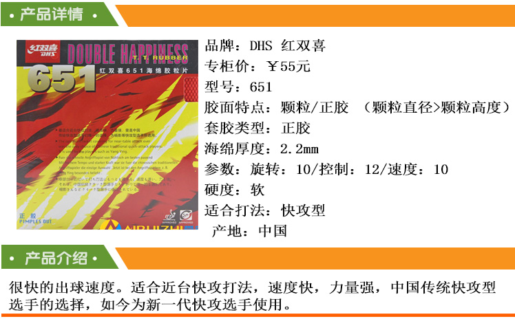 DHS Red Double Joy 651 Dragon Shadow Fast Attack Type Professional Table Tennis Racket Positive Glue Quick Tapping Grain Positive Rubber Sleeve Glue
