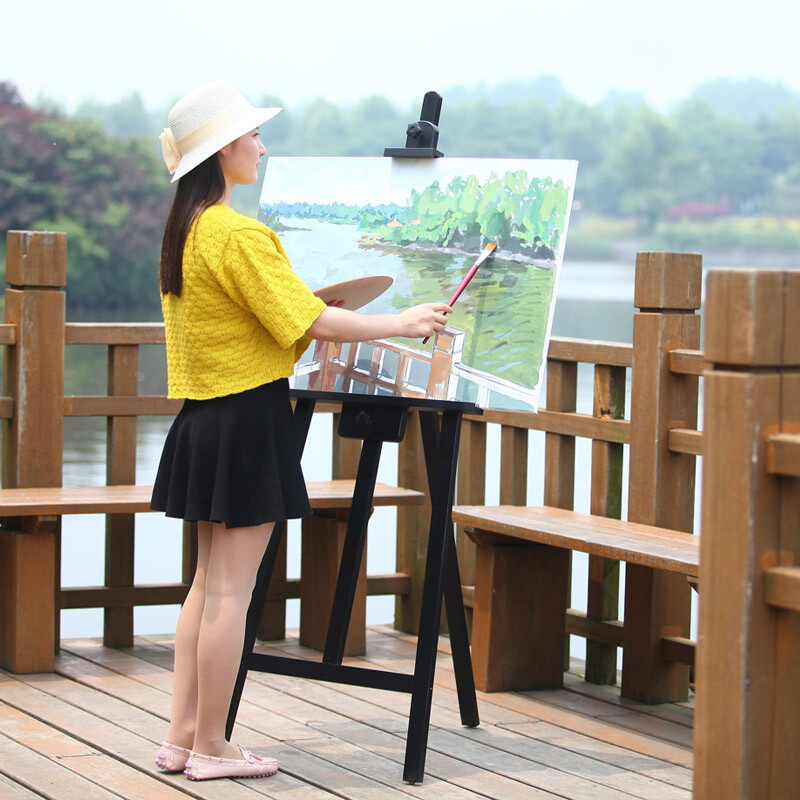 Black 165cm Pine Wood Painting Shelf Fine Arts Students Baking Lacquered Oil Painting Shelf Solid Wood Advertising Wedding Exhibition Shelf-Taobao