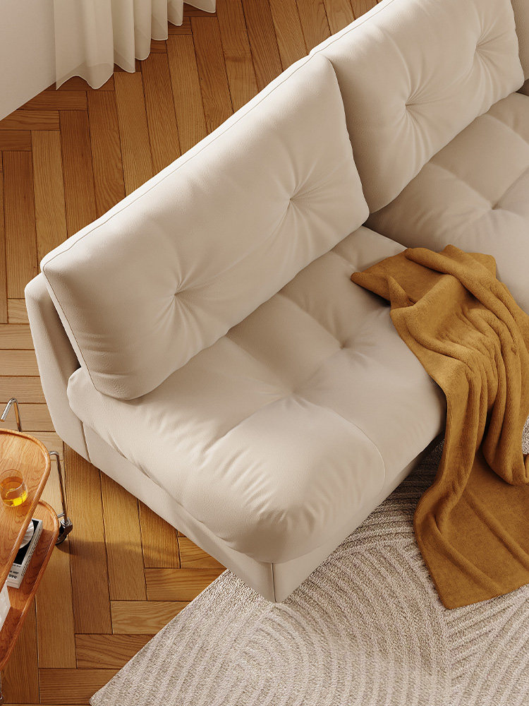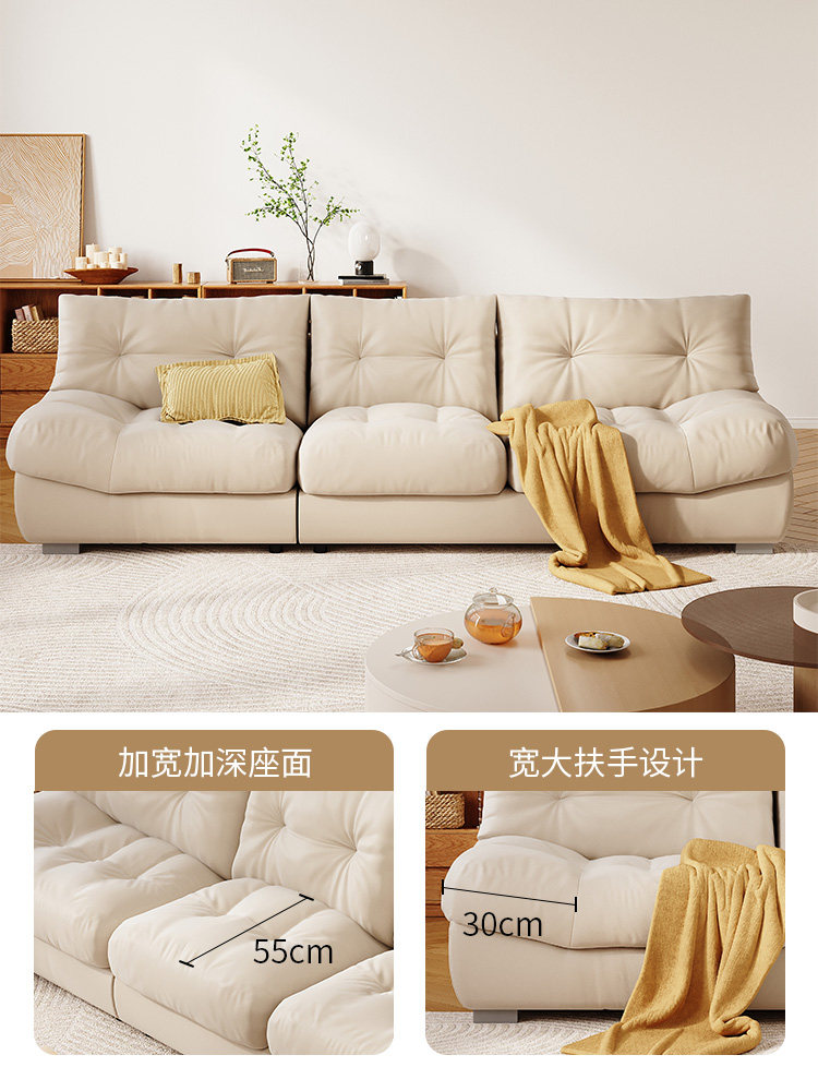 Mousse's official flagship store-owned adore real leather sofa cream wind double small family-style living room cloud sofa-Taobao
