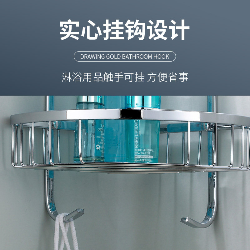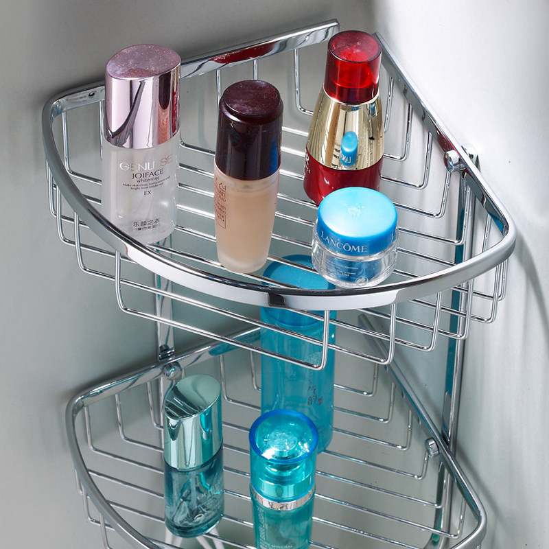 Bathroom shelf wall-mounted shower room toilet double-layer triangle basket stainless steel net basket corner frame storage rack