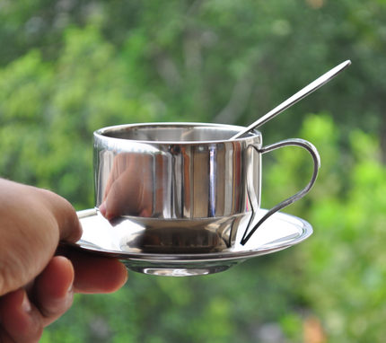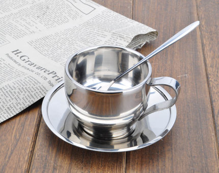 Double layer stainless steel European-style coffee cup with spoon suit a creative tea cup with a coffee cup-Taobao
