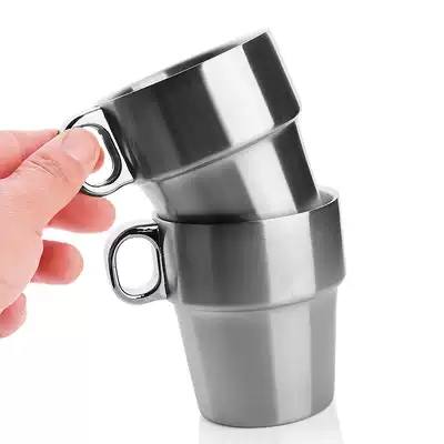 Double-layer stainless steel water cup Coffee cup folding seven-piece set cup with steel cup holder Tower cup coffee set