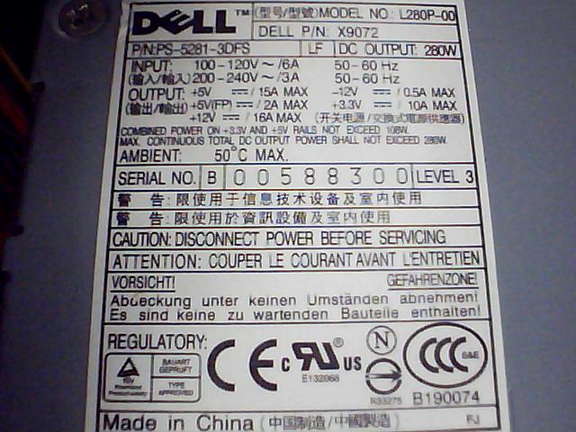 Original dress DELL 745740755 GX280 GX620 GX520 GX520 L280P-01 L280P-01 L255p