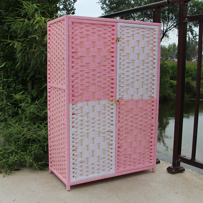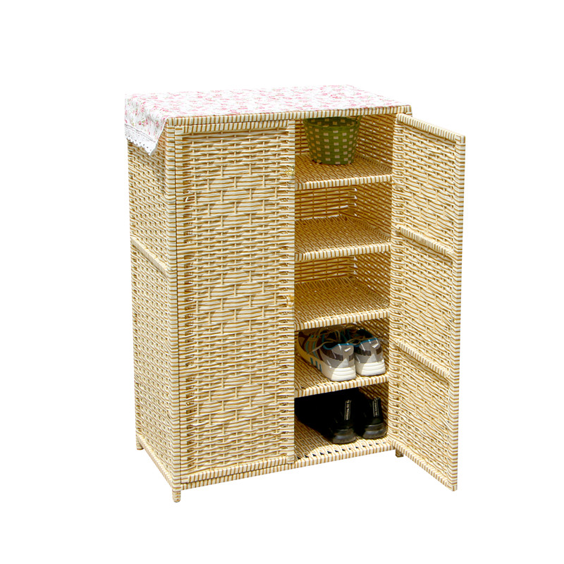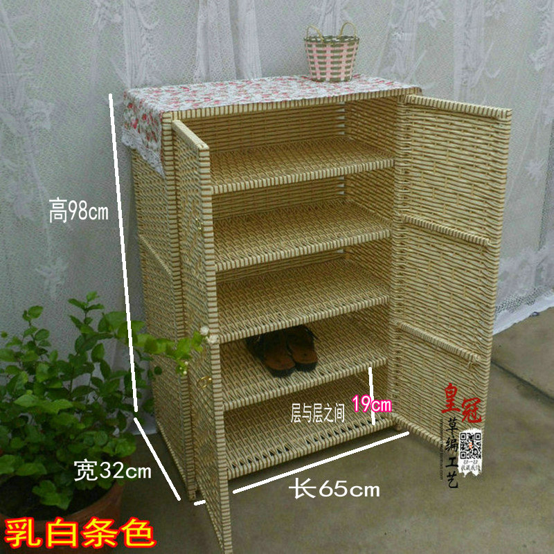 Shoe rack rattan door shoe cabinet solid wood simple cabinet storage cabinet dust-proof shoe rack multi-layer simple household economy