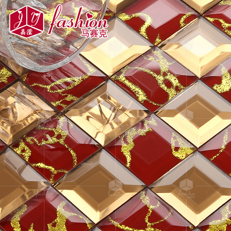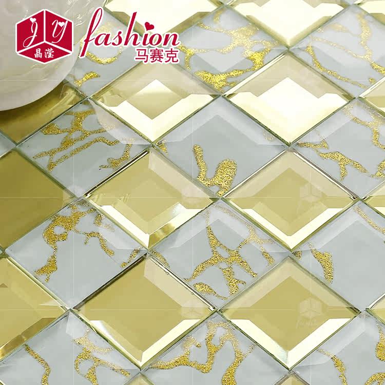 (Crystal Ying) Tea mirror White gold dragon gold mirror glass mosaic puzzle TV background wall sticker tile