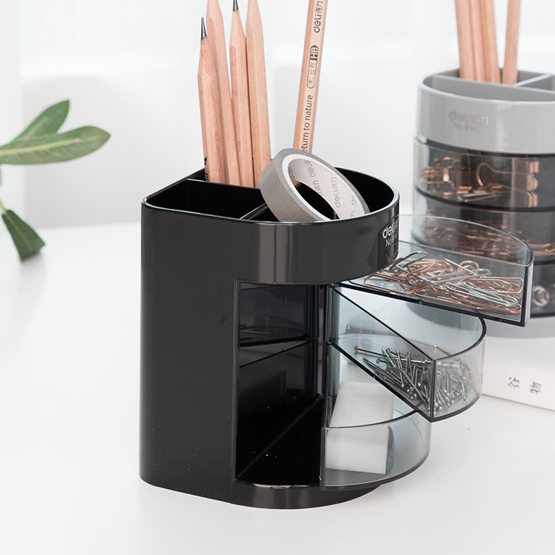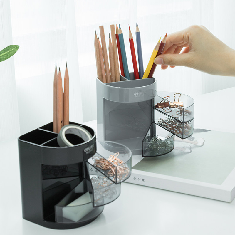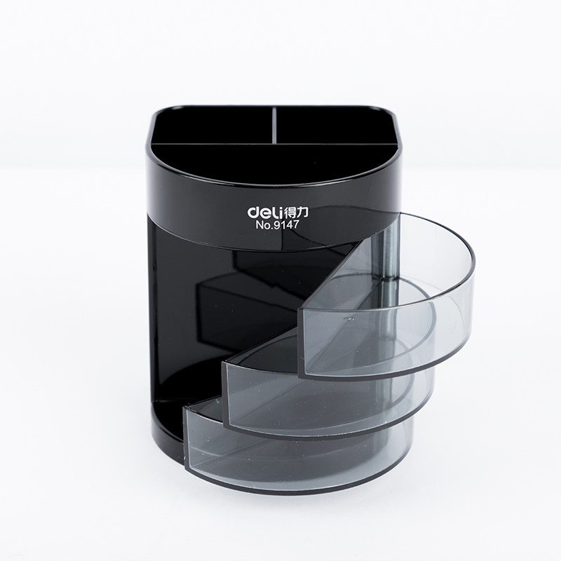 Deli 9147 transparent pen holder Office business plastic creative storage three-layer multi-function pen holder Cute small object storage pen holder fashion storage box pen plug