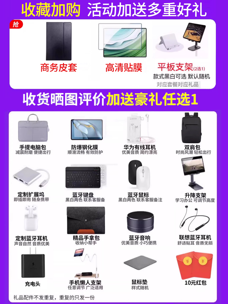 (Office package) Get the headphones, clutch, power bank, choose 1 Bluetooth keyboard, mouse, bracket, mouse pad, leather case, tempered film, liner bag, inner bag