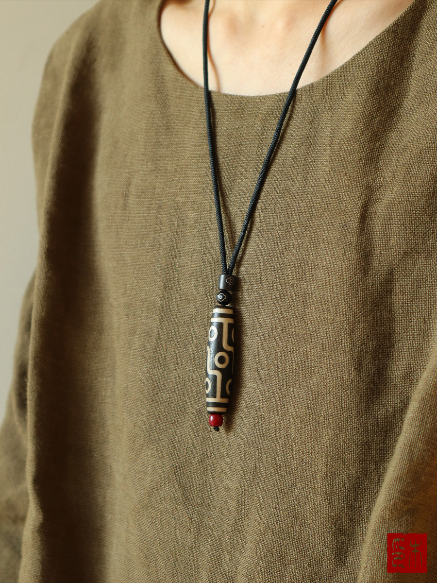 Mu Mian "Tiancheng" Tibetan natural agate nine -eyed Tianzhu pendant necklace text play men's and women's jewelry gifts