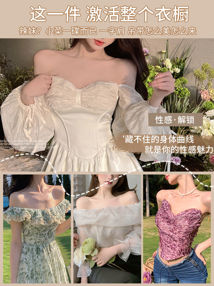 Special strapless non-slip underwear for suspenders skirts, one-shoulder anti-exposure strapless invisible beautiful back, summer thin chest wrap
