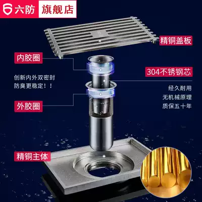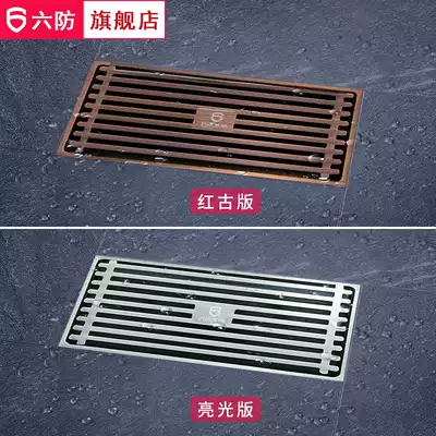 Six-proof rectangular floor drain dressing room full copper extended matte large displacement shower room deodorant floor drain insect retro