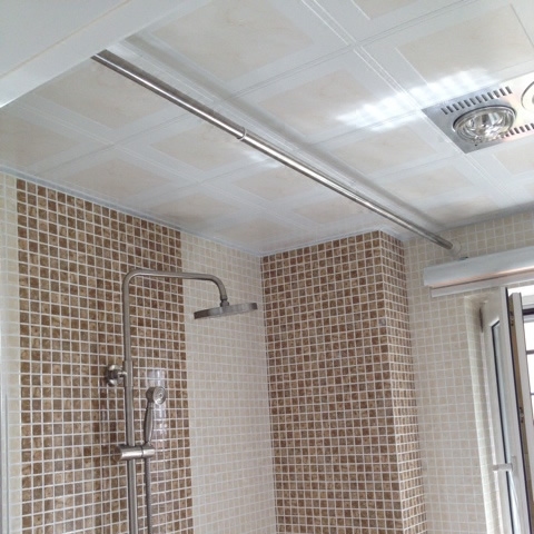 Lengthened Thickened Stainless Steel Full Spring Telescopic Rod Bath Curtain Rod Bathroom Curtain Rod clothesline Non-perforated installation