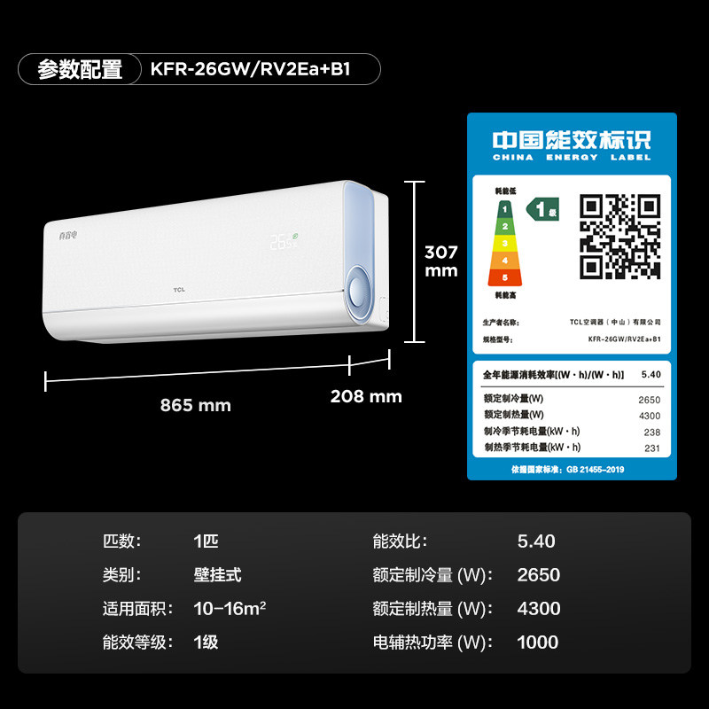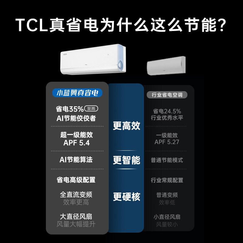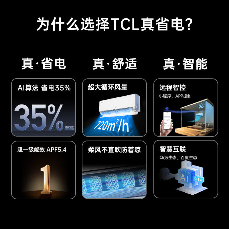 TCL Air Conditioner Large 1 HP Small Blue Wing True Power Saving On-hook Super Level Energy Efficiency Power Saving 35% Frequency Converter Home Heating and Cooling 55