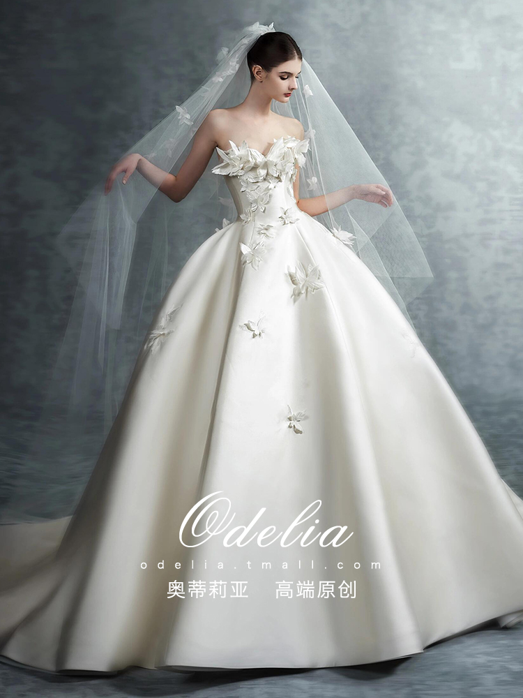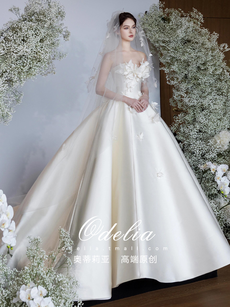 odelia French satin wedding dress 2024 new high-end main yarn bride going out yarn slimming high-end