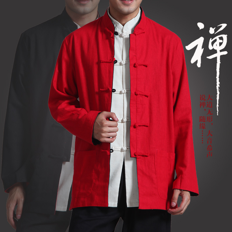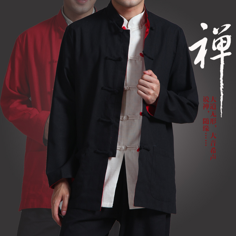 Tang loaded with male Chinese wind bifacial wearing jacket retro male clothing Chinese style large size and long sleeve blouse old coarse buya hemp jacket