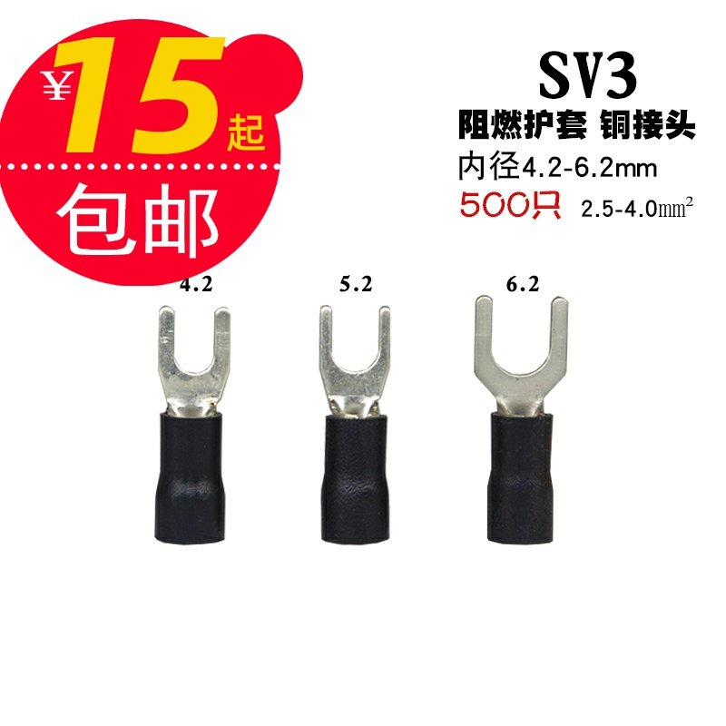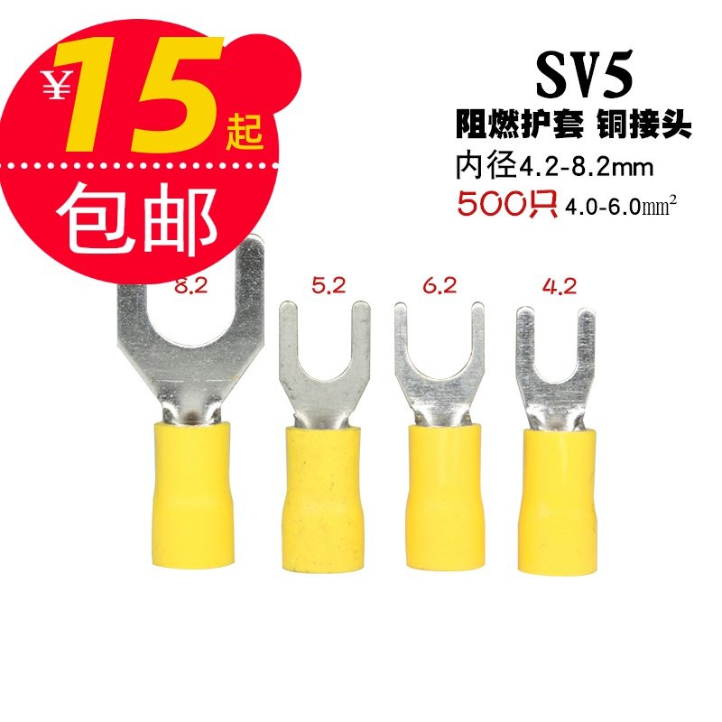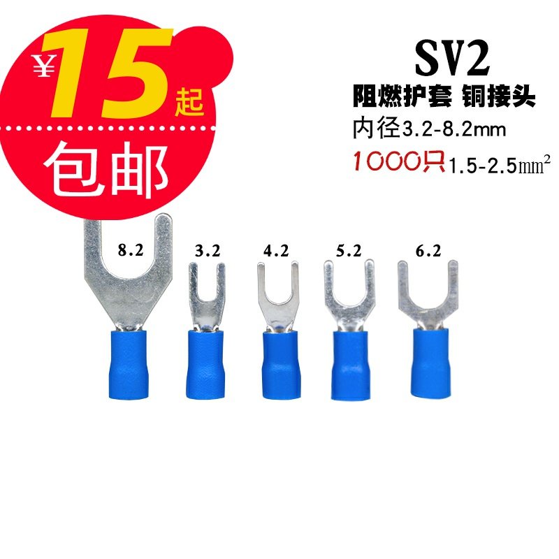 Wire fork Y shape pre-insulation terminal SV1 25-3 wiring terminal copper nose cold pressure terminal copper ear connector