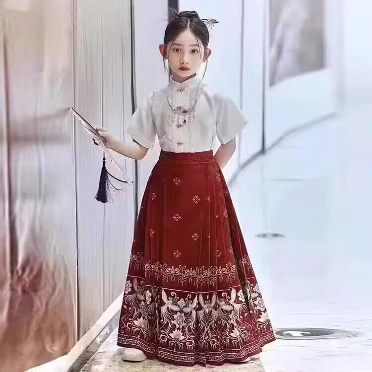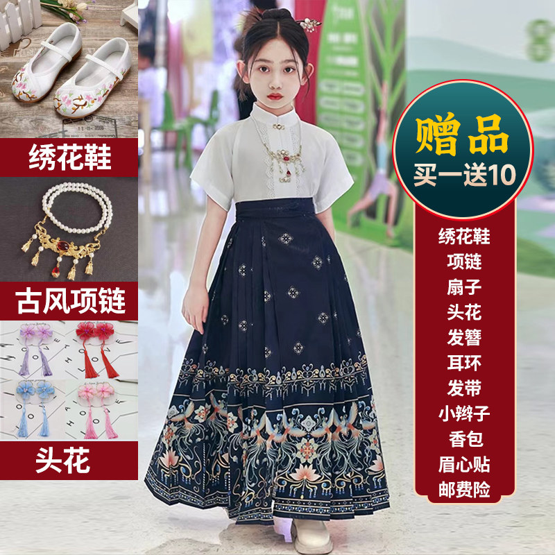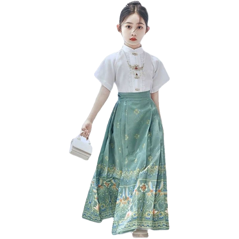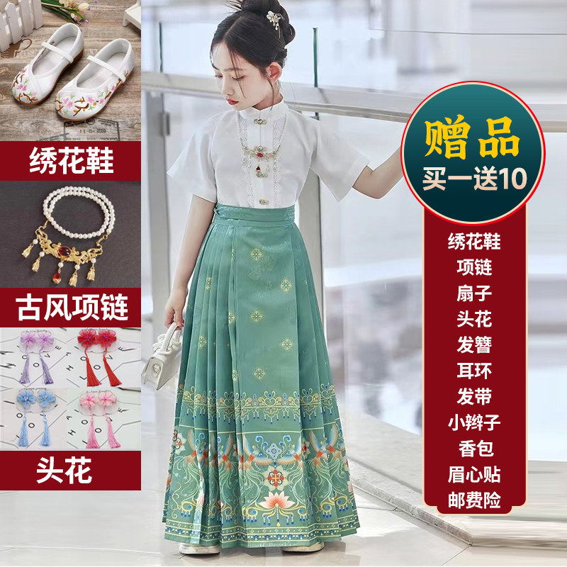 Burgundy horse face short-sleeved suit, shoes, necklace, gift, navy blue horse face short-sleeved suit, shoes, necklace, gift, light green horse face short-sleeved suit, shoes, necklace, gift, burgundy horse face short-sleeved suit, necklace