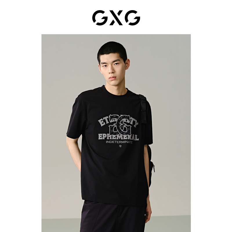 GXG Men's Wear Shopping Mall Same Style Black Casual Loose Commuting Short-Sleeved T-Shirt 24 Summer New Product G24X442057