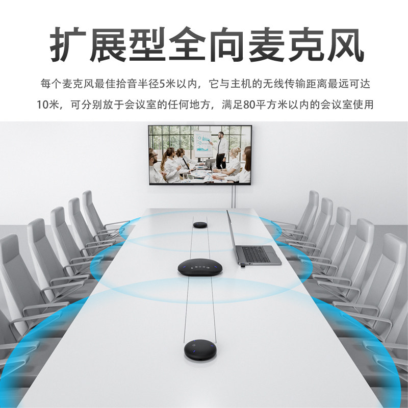 Remote Conference Omnidirectional Microphone 5.8G Wireless One to Two Conference Microphone Large Conference Room Video Conference Microphone Extended High Power Speaker Noise Reduction Ruishi Teng G202T