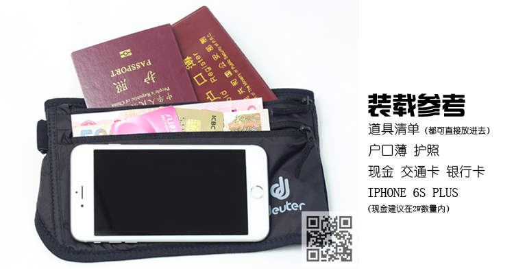 German Deuter ultra-thin and light ID mobile phone concealed security anti-theft close-fitting wallet passport belly pocket