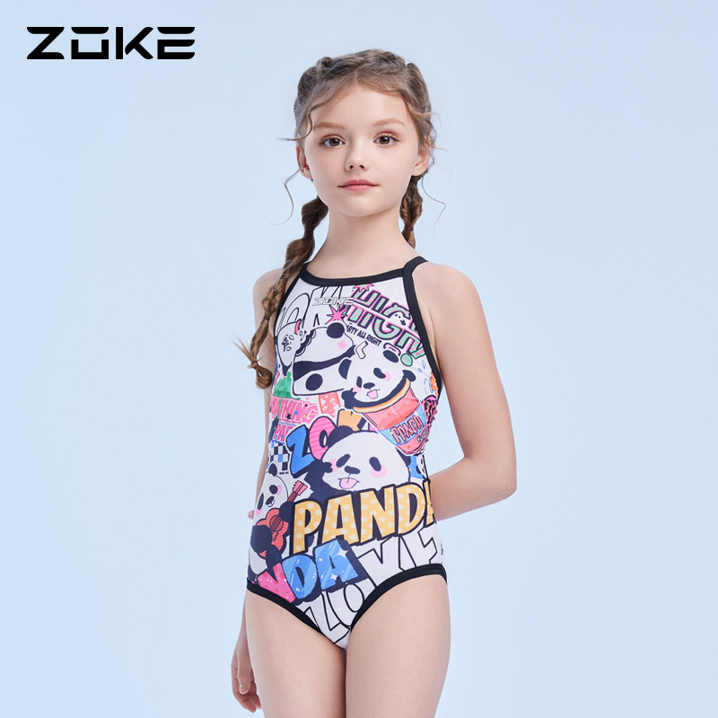 Zhouke children's swimsuit one-piece triangle professional swimming training panda girls quick-drying competition big children's swimsuit