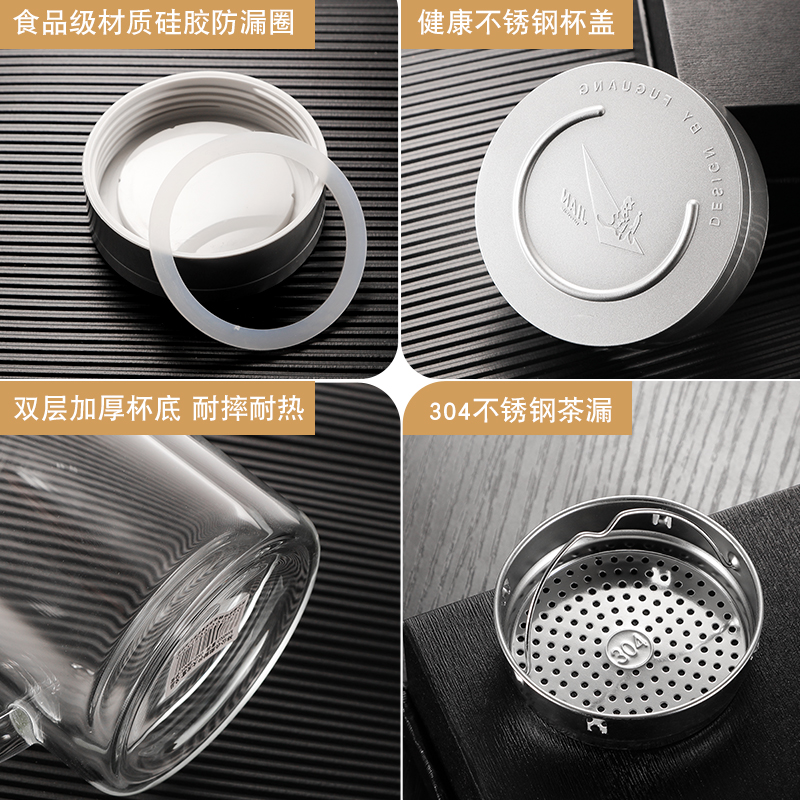 Fuguang double-layer glass Large capacity tea cup Transparent filter creative thickened water-proof cup with lid