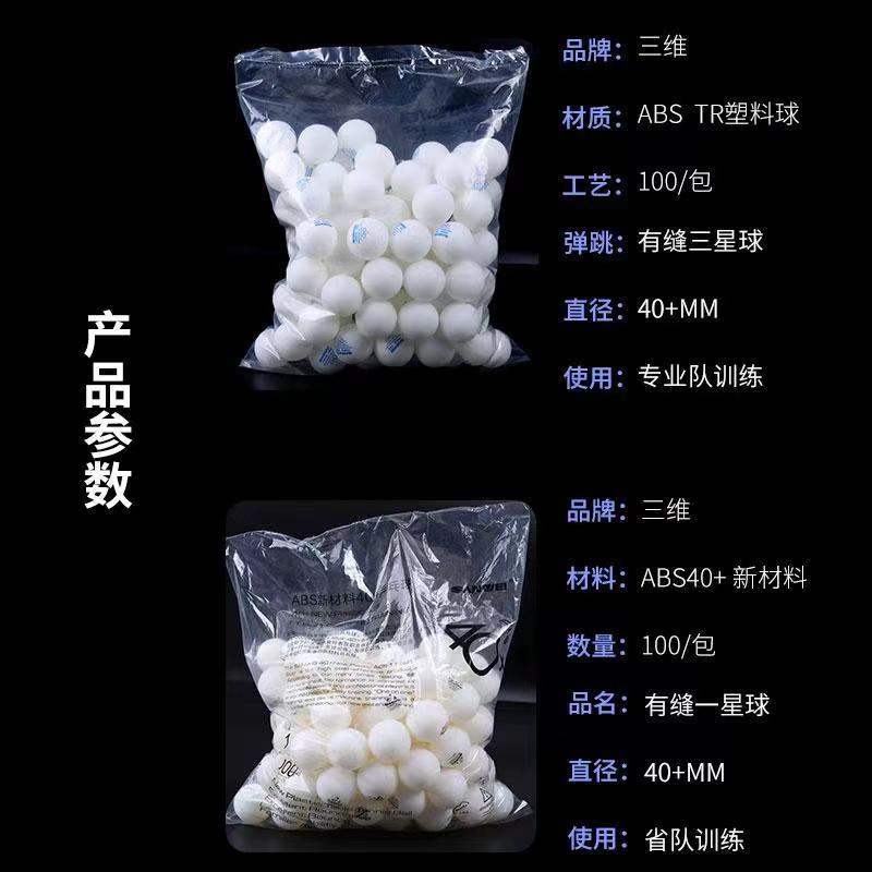 Three-dimensional table tennis seamed 3-star TR training ball 40 pieces, provincial team one-star ABS daily sports practice ball 100 pieces