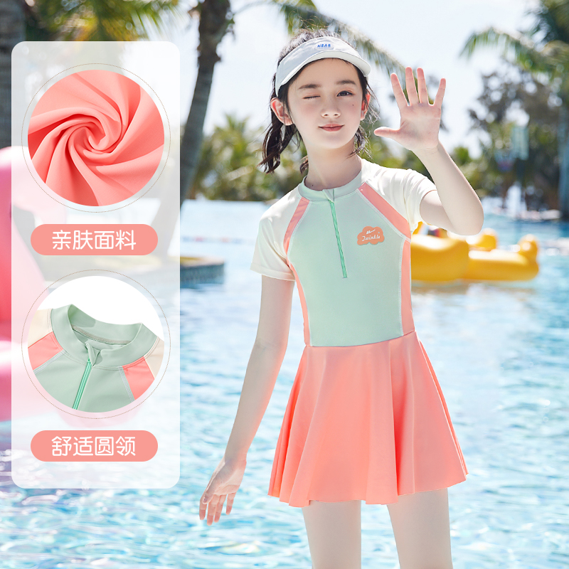 Pull back children's swimsuit girls one-piece medium and large children's swimsuit female students 2024 new youth swimsuit suit summer