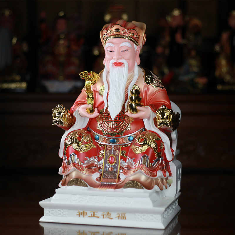 White marble imitation porcelain land god statue Fude Zhengshen Buddha statue household landowner God of Wealth hand-painted worship ornaments