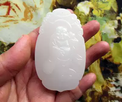 Xinjiang natural jade carving Maitreya laughing Buddha Jade card (handle) pendant