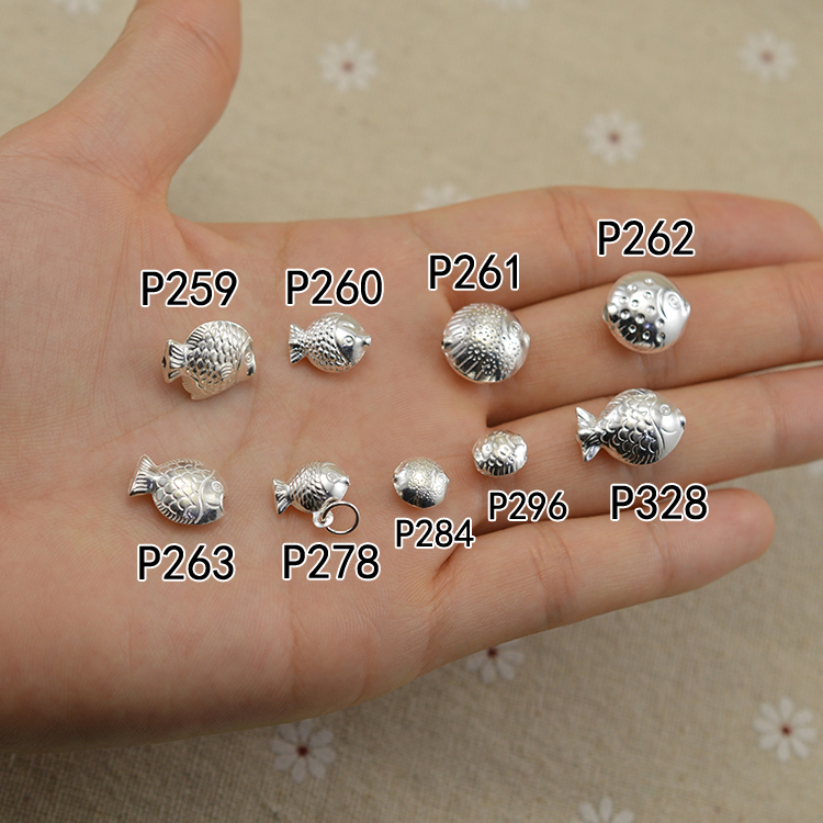 diy handmade bracelet accessories auspicious lucky kissing little whitebait loose beads 925 silver jewelry braided hand rope accessories pendant