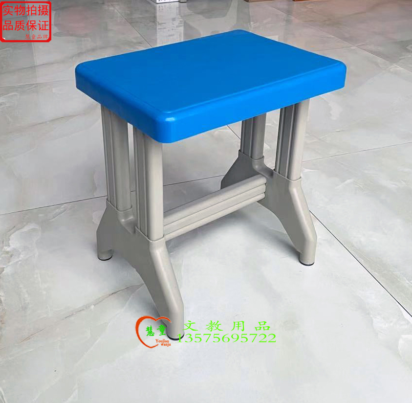 Sky Blue Blue Treasure Blue Twin Columns Student Bench Foot Reinforcement Type Square Bench Single Column Classic Square Bench