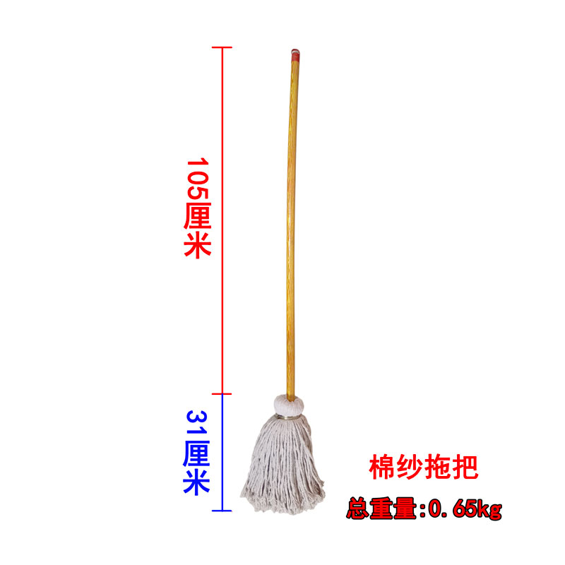 Cotton Yarn Mop Old Common Wood Rod Pure Cotton Thread Tug Household Round Head Mound Mop Water Suction Property Factory Mop