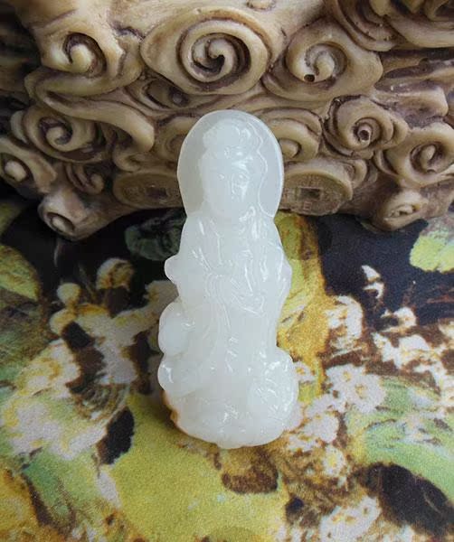 Xinjiang Natural jade sculpture Yuzha Bodhisattva Branch hanging parts