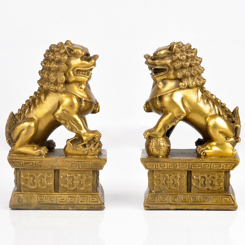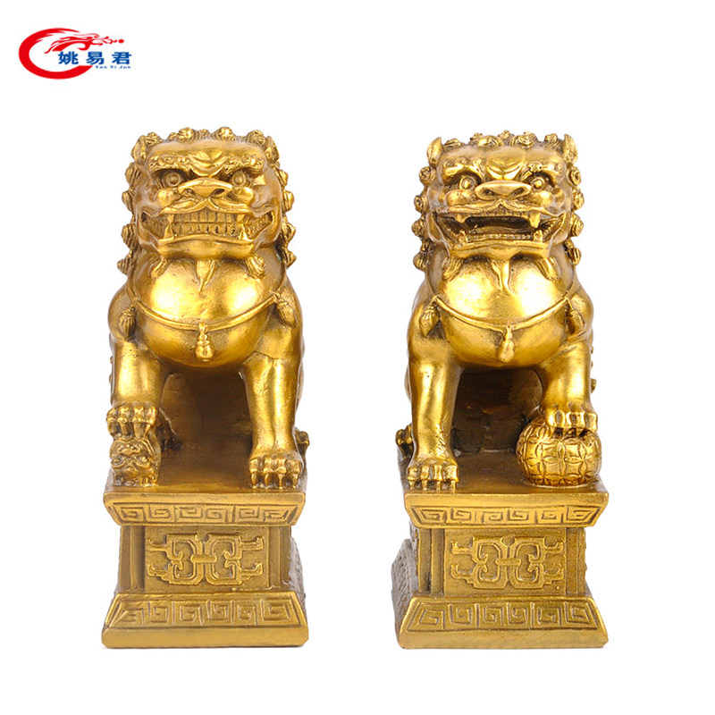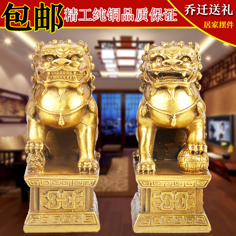 Copper lion ornaments A pair of crafts Copper lion ornaments Home decoration decorations