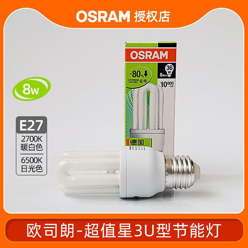 Osram energy-saving lamp tube 3u type 8W11W lamp Ideal Ruishang table lamp light source bulb straight tube energy-saving lamp E27