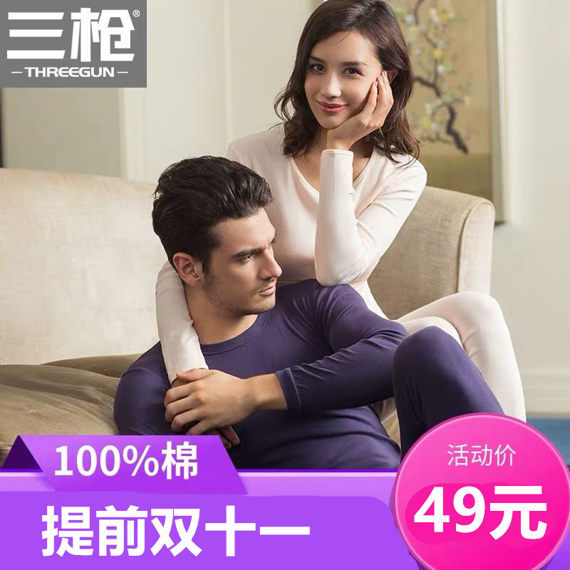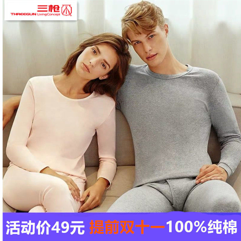 Three-gun underwear comfortable cotton round neck men's and women's autumn clothes sanitary pants cotton thin cotton underwear Lycra cotton cotton sweater pants suit